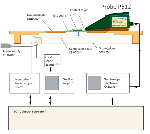 使用 P512 探头进行 RF 测量的示例测量设置: